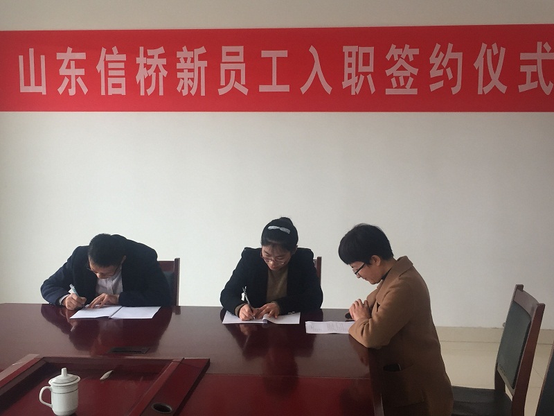 2018年11月30日下午3點(diǎn),新員工入職簽約儀式在泰安信橋二樓會議室舉行,公司副總石振偉與新員工李佳欣參加,同時公司財務(wù)總監(jiān)張燕與人事人員出席。