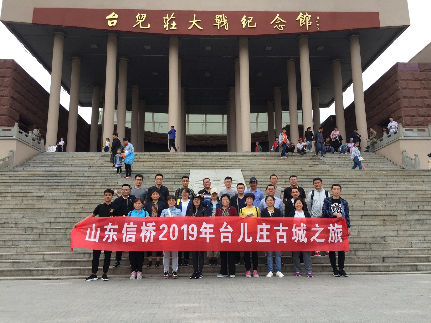 2019.5.11早大家在指定地點(diǎn)集合乘車(chē)赴棗莊,抵達(dá)后參觀【臺(tái)兒莊大戰(zhàn)紀(jì)念館】,在紀(jì)念館前拍照留念后沿38級(jí)臺(tái)階拾級(jí)而上,依次步入展覽館的3個(gè)展廳和全景畫(huà)館,600多件珍貴文物史料和集聲、光、塑、形及氣勢(shì)恢弘的畫(huà)面于一體的巨幅全景畫(huà),再現(xiàn)那一段飽含光與淚的歷史,引人深思。