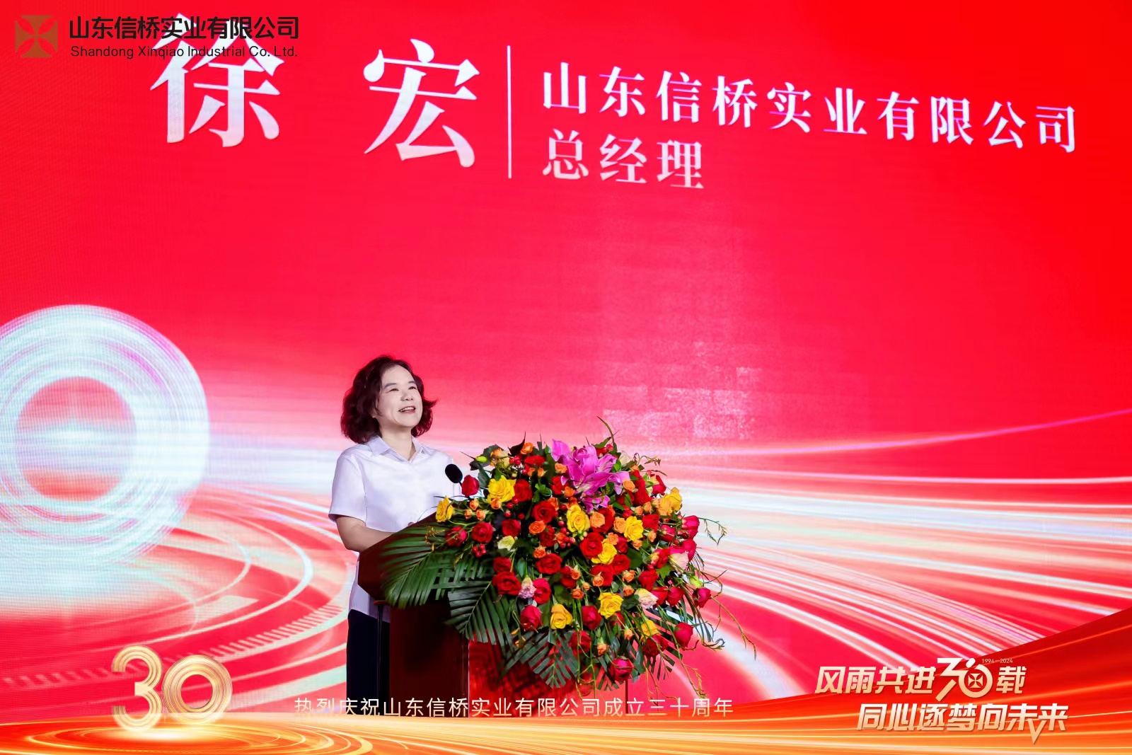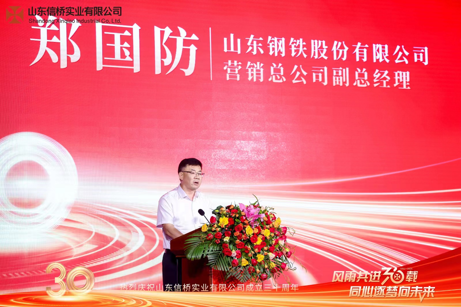 鄭總首先對信橋30周年慶典表示祝賀,并強調(diào)信橋公司在耐低溫和低合金型鋼以及角鋼等領(lǐng)域表現(xiàn)突出,為國內(nèi)外重點工程、重要客戶提供了滿意的產(chǎn)品和服務(wù),為塑造山鋼品牌做出巨大貢獻。最后對雙方合作做出美好展望。